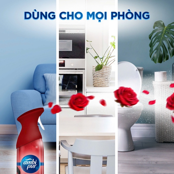 Xịt phòng Ambi Pur giúp loại bỏ tận gốc nhiều mùi hôi cho mọi không gian phòng.