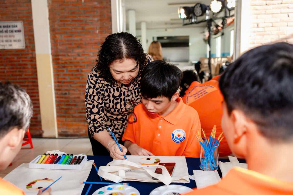 Bên cạnh phần trao quà, ban tổ chức còn tổ chức cho học sinh tham gia các hoạt động sáng tạo như: Trang trí túi tote, vẻ tranh giúp các em trang bị thêm kiến thức, phát huy tài năng, sở trường và năng khiếu của mình. Hoạt động là cơ hội rèn luyện tính tự tin, khả năng giao tiếp và học tập. Các hoạt động biểu diễn văn nghệ với ảo thuật gia vui nhộn trong chương trình đã tạo nên bầu không khí sôi động, gắn kết và đầy tính nhân văn.