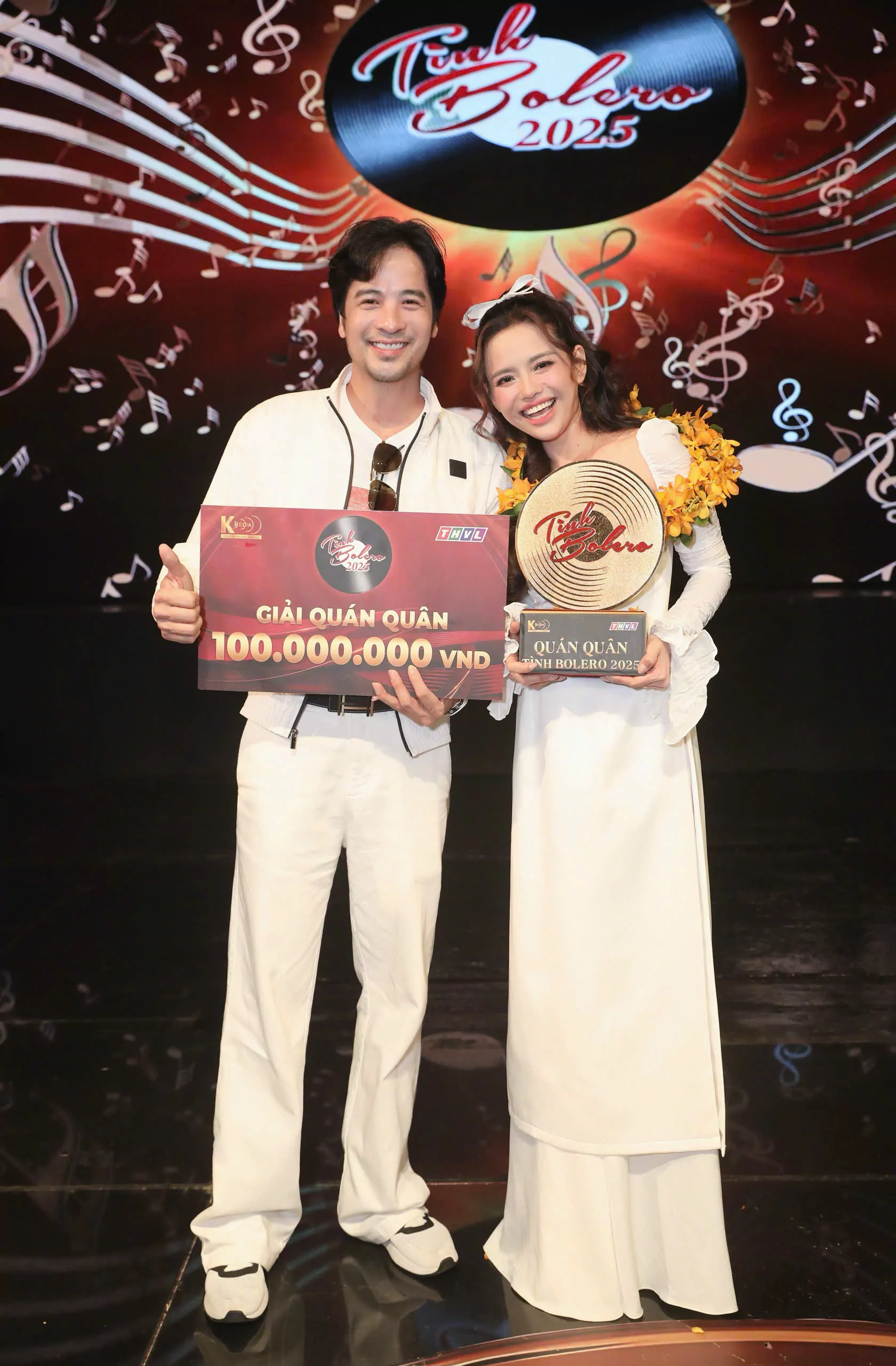 Diễn viên Đoàn Minh Tài chúc mừng Tân quán quân “Tình bolero 2025” Hiền Trang.